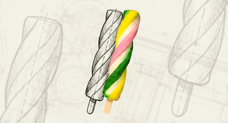 P&P, that stands for ‘product in product’, refers to an ice cream that has now become a classic. It consists of a cylindrical ice pop, surrounded by a raised layer of ice pop that intertwines to form a spiral.